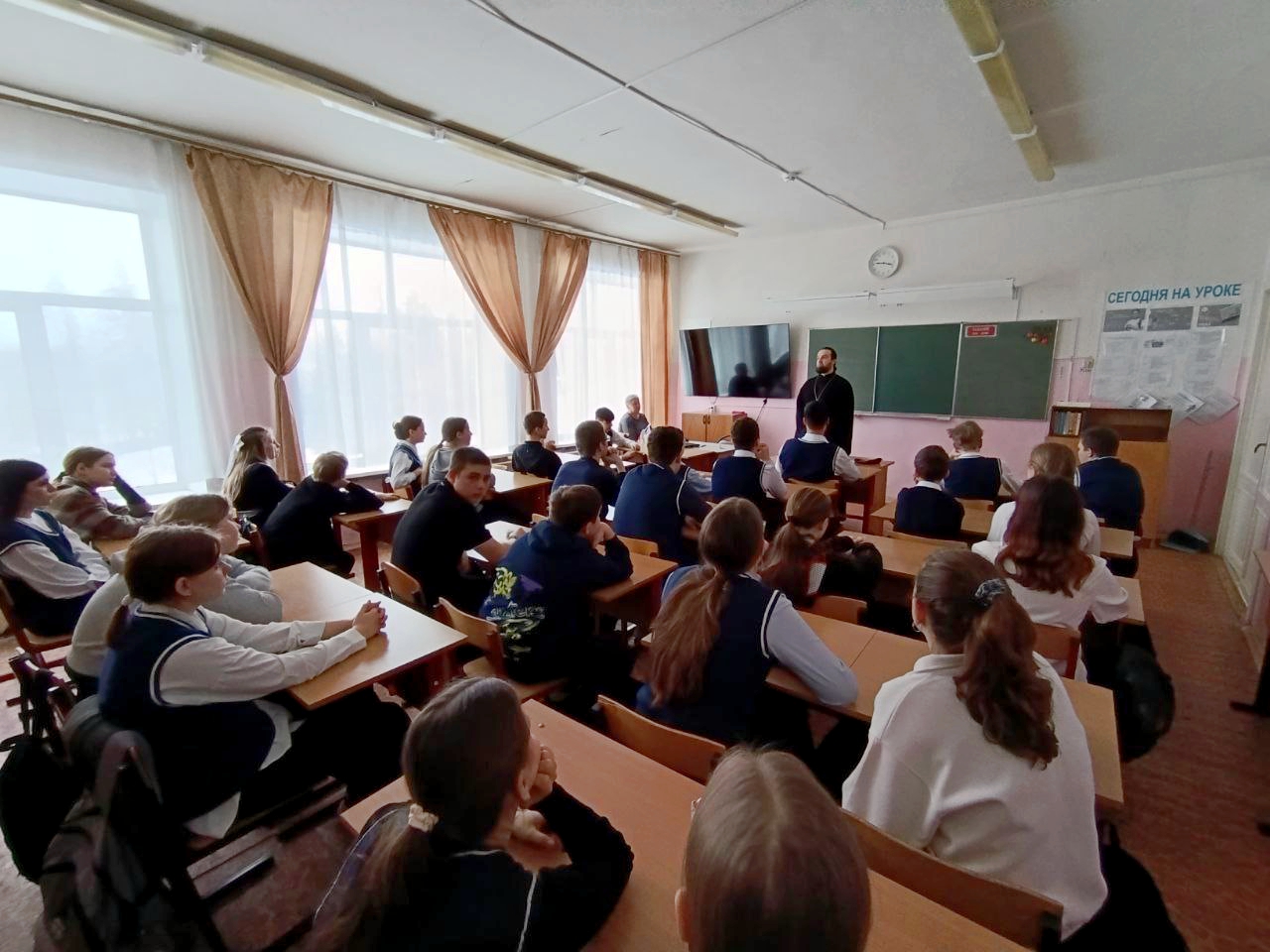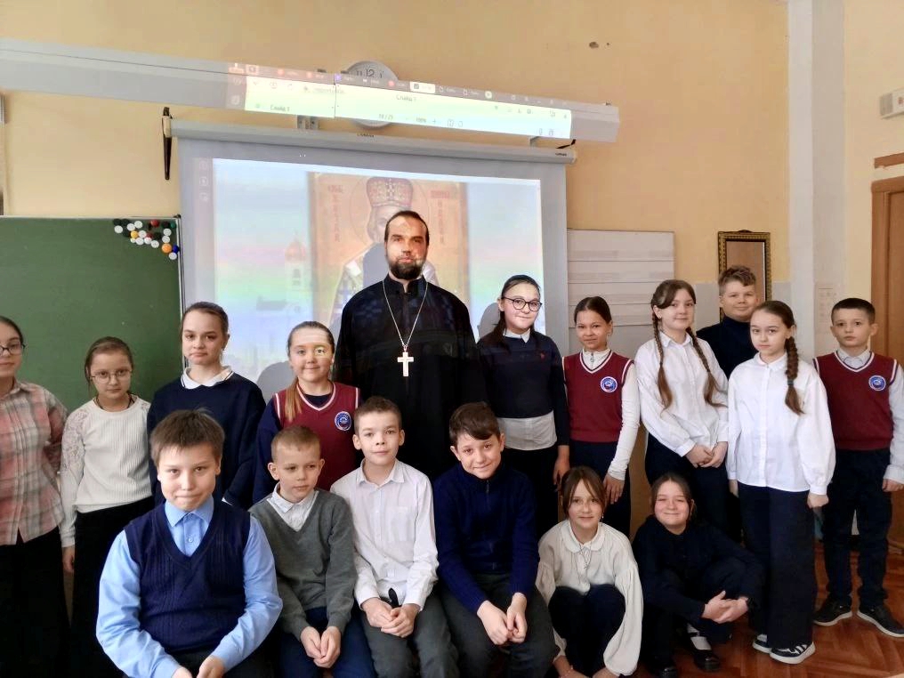 13 марта в пятом классе Тучковской СОШ № 3 прошел интерактивный урок, объединивший две темы. Преподаватель Лидия Кистанова посвятила первую часть занятия значению Великого поста, обратившись к произведению Ивана Шмелева «Лето Господне». Ребята познакомились с биографией писателя и обсудили символическое значение Чистого понедельника. О новомучениках Церкви Русской рассказал настоятель Казанского храма деревни Поречье протоиерей Димитрий Разинский. Его слово было посвящено протоиерею Александру Волоснухину, последнему настоятелю Казанского храма, расстрелянному в 1929 году. Священник поделился подробностями его жизни: уроженец Ярославской губернии, в юности бурлак, затем послушник монастырей, композитор, с 1917 года служивший в деревне Поречье. В 1929 году отец Александр был арестован и после мученических испытаний расстрелян, успев перед смертью упросить конвоиров позволить ему совершить последнее богослужение.