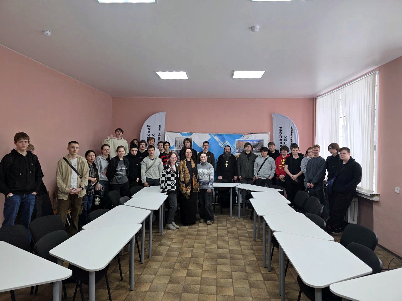 24 февраля протоиерей Игорь Шумилов встретился со студентами первых и вторых курсов Тучковского филиала Московского политехнического университета. Разговор на тему «Новомученики и исповедники Российские XX века. Житие. Подвиг» был приурочен ко Дню защитника Отечества и прошел в формате открытого диалога о вере, истории и нравственном выборе. Открывая беседу, священник подчеркнул, что понятие защитника Отечества гораздо шире, чем человек с оружием в руках. Речь шла не только о прославленных архиереях и священниках, но и о простых мирянах, которые, рискуя свободой и жизнью, сохраняли веру, помогая выстоять окружающим. Отец Игорь обратил внимание студентов на то, что слово «подвиг» мы часто слышим в контексте войны или спорта, но это еще и умение оставаться человеком в нечеловеческих условиях, сохранять достоинство и свои принципы. Во второй части встречи священник обратился к Священному Писанию, рассказав о христианском понимании спасения.