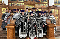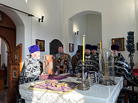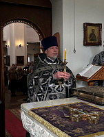 18 марта 2026 года в Преображенском храме в Долгопрудном благочинный Долгопрудненского церковного округа протоиерей Андрей Хмызов возглавил соборное служение Литургии Преждеосвященных Даров. Затем в здании воскресной школы под его председательством состоялось братское совещание духовенства округа.