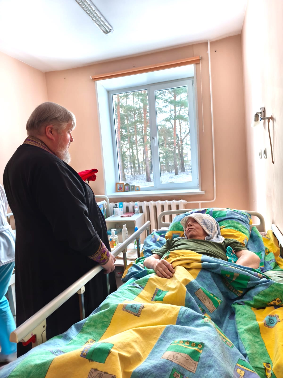 В ходе посещения отец Николай обратился к пациентам с пастырским словом. Все желающие исповедались и причастились Святых Христовых Тайн.