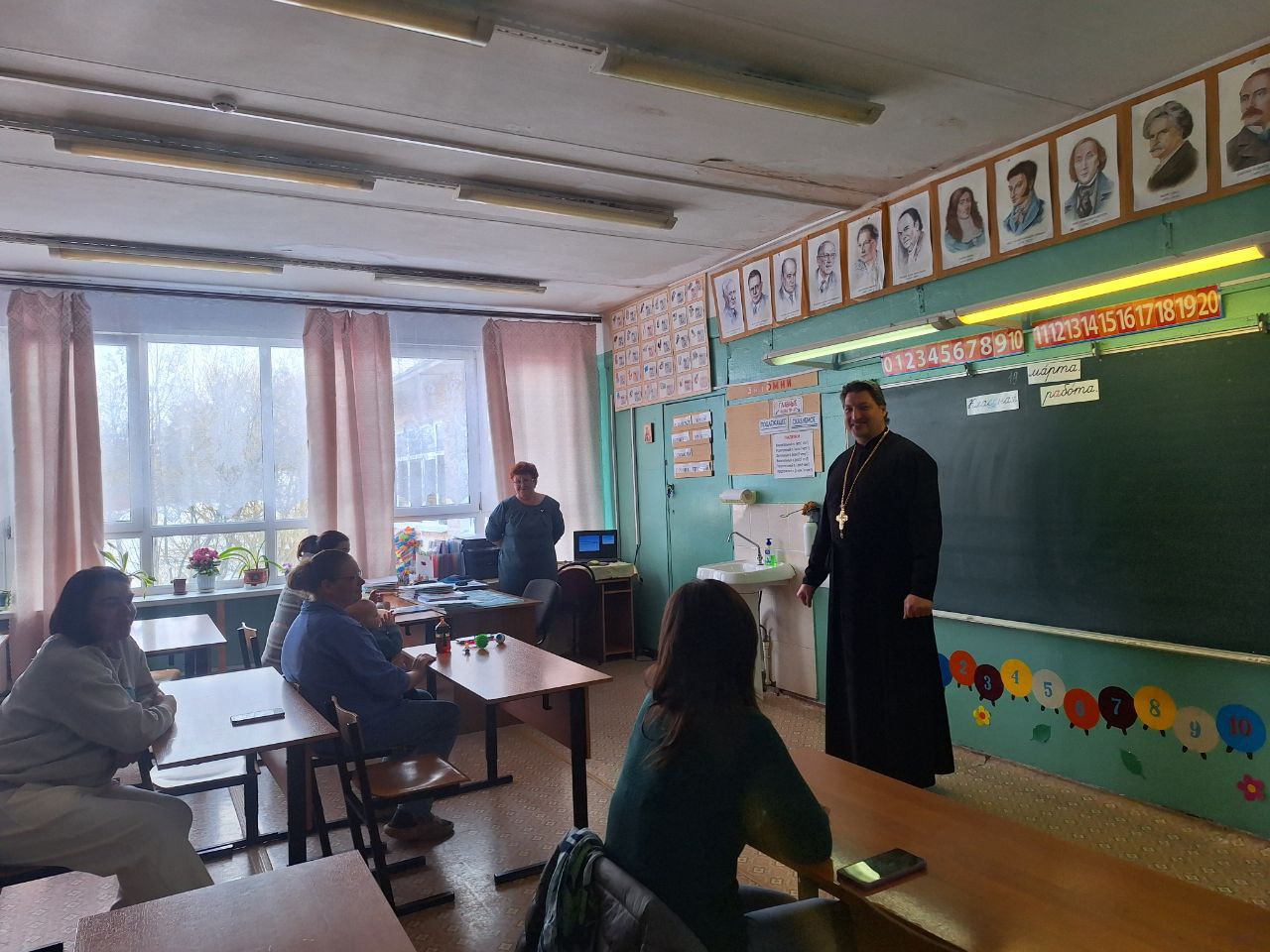 19 марта настоятель Михаило-Архангельского храма с. Петрово священник Максим Шамков побывал в средней общеобразовательной школе села Петрово муниципального округа Серебряные Пруды района на родительском собрании 3-х классов, посвященном выбору предмета «Основы духовно-нравственной культуры народов России». Отец Максим в своем выступлении объяснил родителям пользу и необходимость выбора модуля «Основы православной культуры» для становления личности и знания истории основанной на культуре Православия.