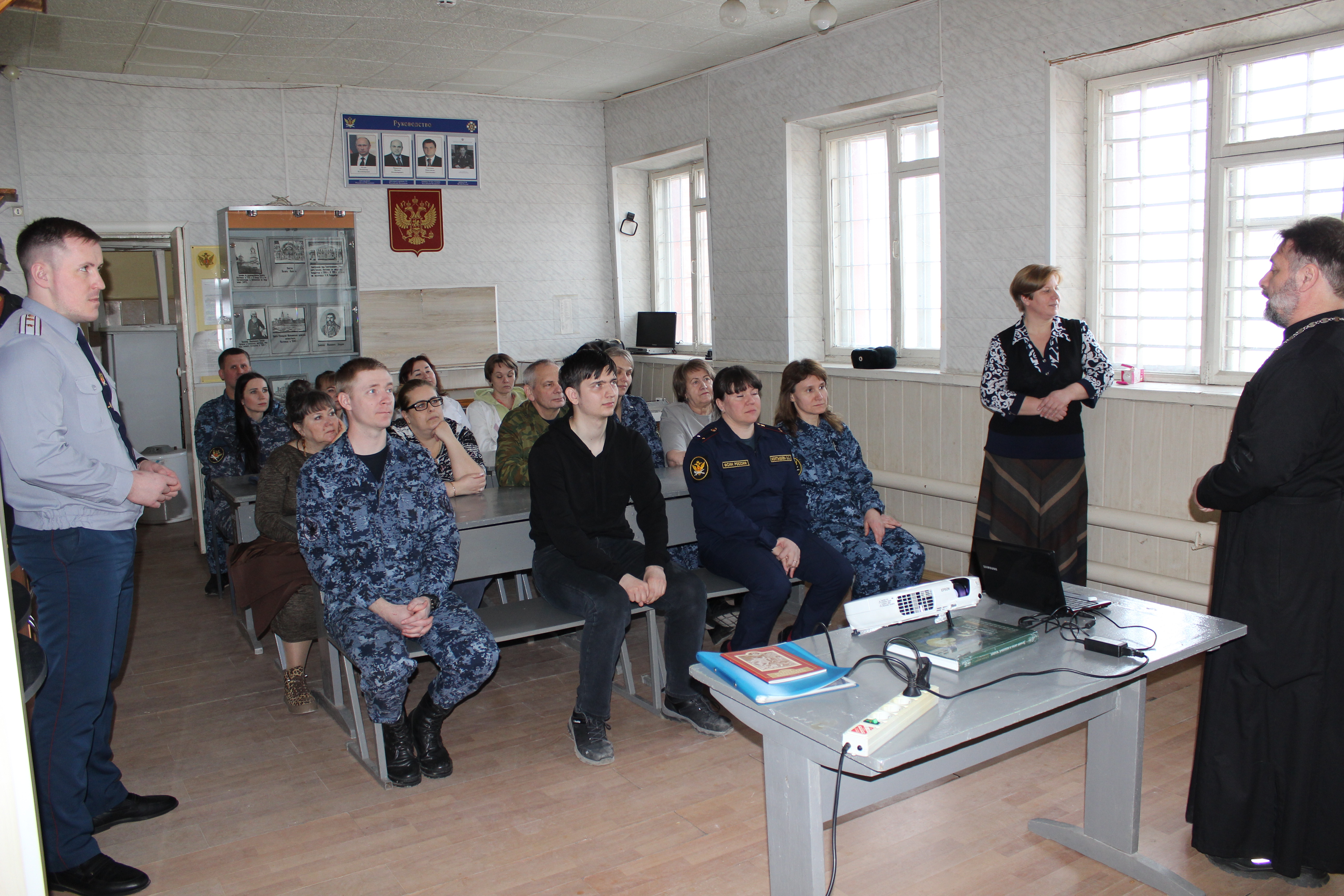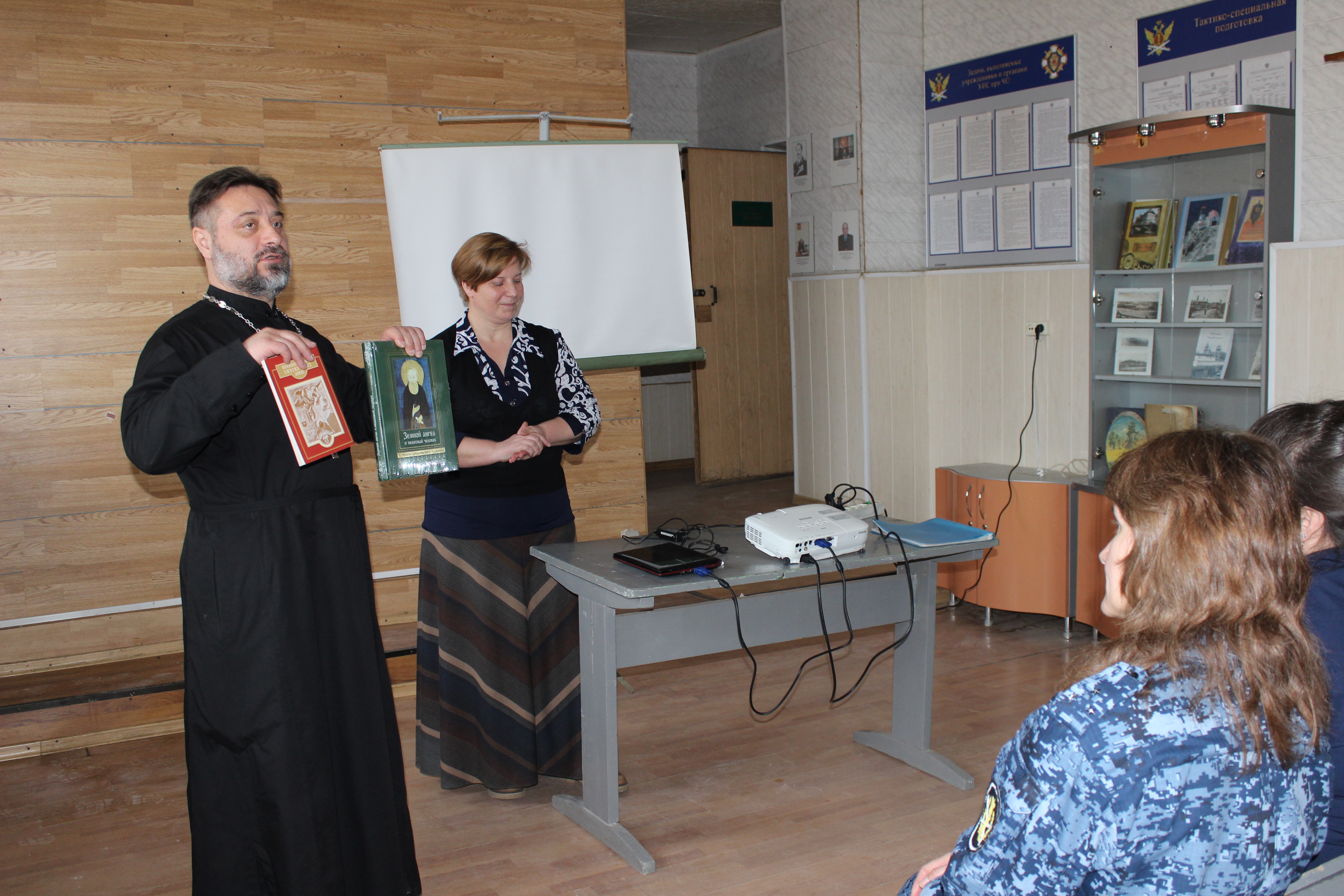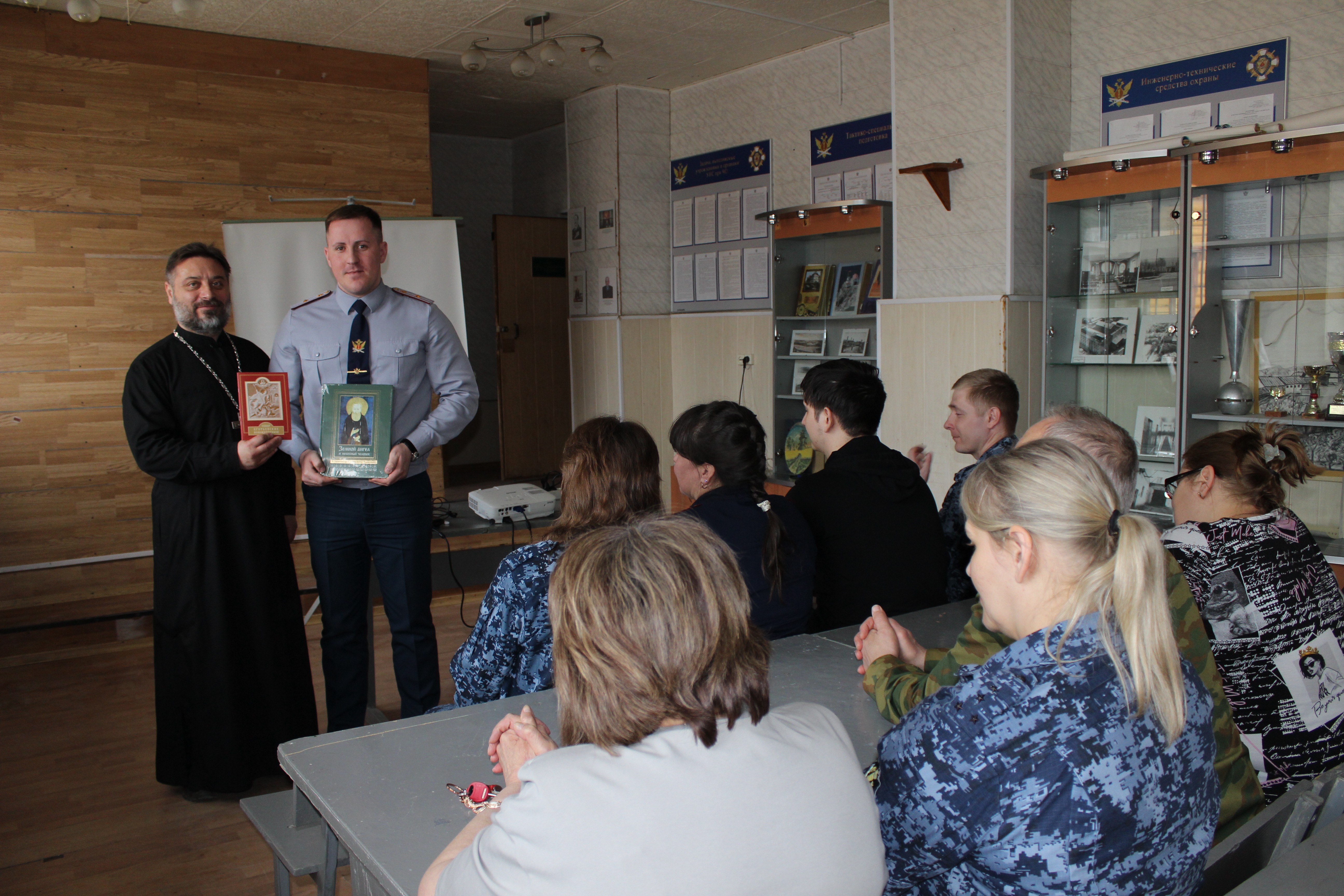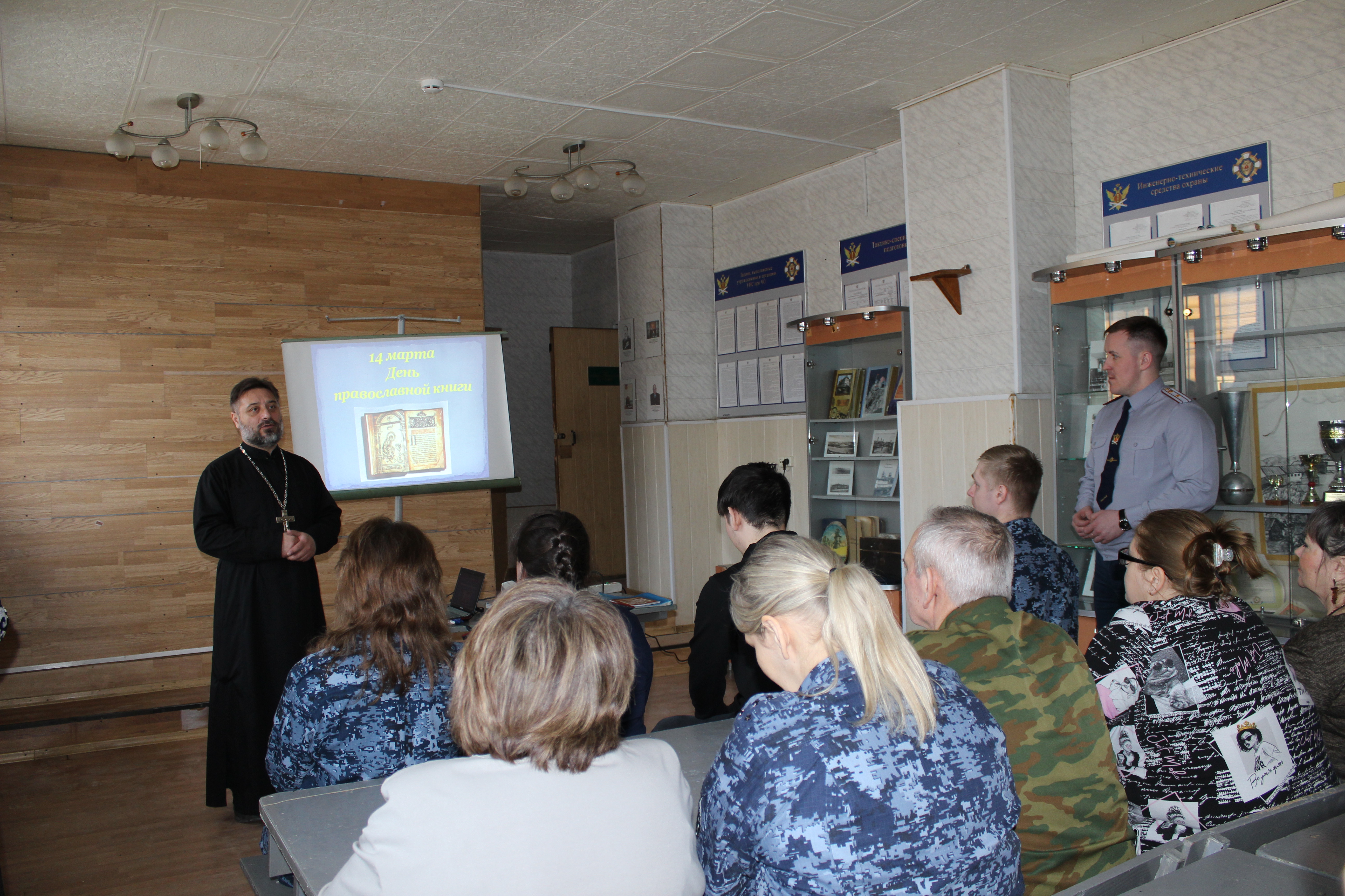 18 марта 2026 года настоятель Знаменского храма д. Алёшино, помощник начальника СИЗО-7 г. Егорьевска по работе с верующими иерей Роман Теребилкин в рамках празднования Дня православной книги провел беседу с сотрудниками СИЗО-7 г. Егорьевска. Отец Роман рассказал собравшимся об истории книги на Руси, о рукописном и печатном этапах её развития, о материалах, используемых для изготовления книг. В завершении беседы отец Роман преподнёс в дар библиотеке учреждения книги о преподобном Сергии Радонежском и о новомучениках и исповедниках Егорьевских.