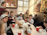 В финале игры команды учащихся получили в подарок книги для детей о Великом посте и Пасхе и вкусные "крестики". Завершился праздник книги совместным постным обедом и общением.