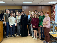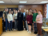 Тема встречи: «День Православной книги», который традиционно отмечается в России 14 марта. В ходе оживленной беседы отец Александр рассказал студентам об истории праздника, а также на примере жизни и творчества великого русского писателя Ф.М. Достоевского показал, что чтение серьезных книг не только учит и воспитывает человека, но и может «перевернуть» всю его жизнь, изменить мировоззрение. Такой книгой в жизни писателя стало Евангелие.