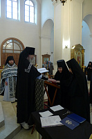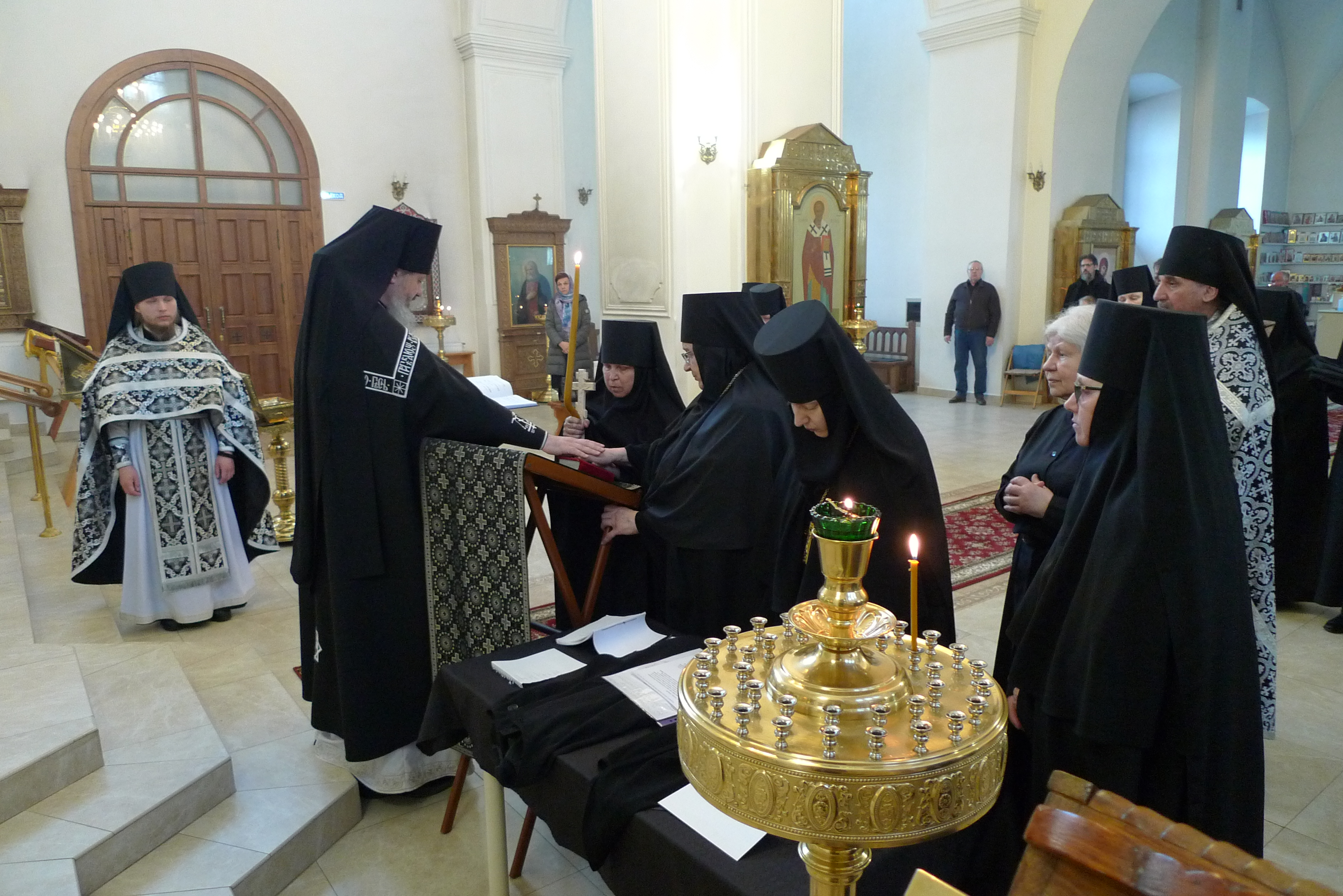 После богослужения игумен Алексий обратился с напутственным словом к новопостриженным сёстрам.