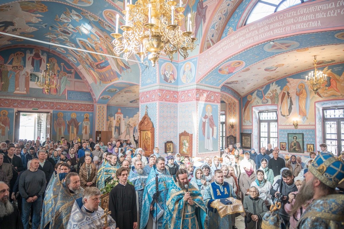 28 марта 2026 года, в субботу 5-й седмицы Великого поста, праздник Похвалы Пресвятой Богородицы (Суббота Акафиста), епископ Сергиево-Посадский и Дмитровский Кирилл возглавил Божественную литургию в честь престольного праздника в храме Похвалы Пресвятой Богородицы в Ратмино в г. Дубне.