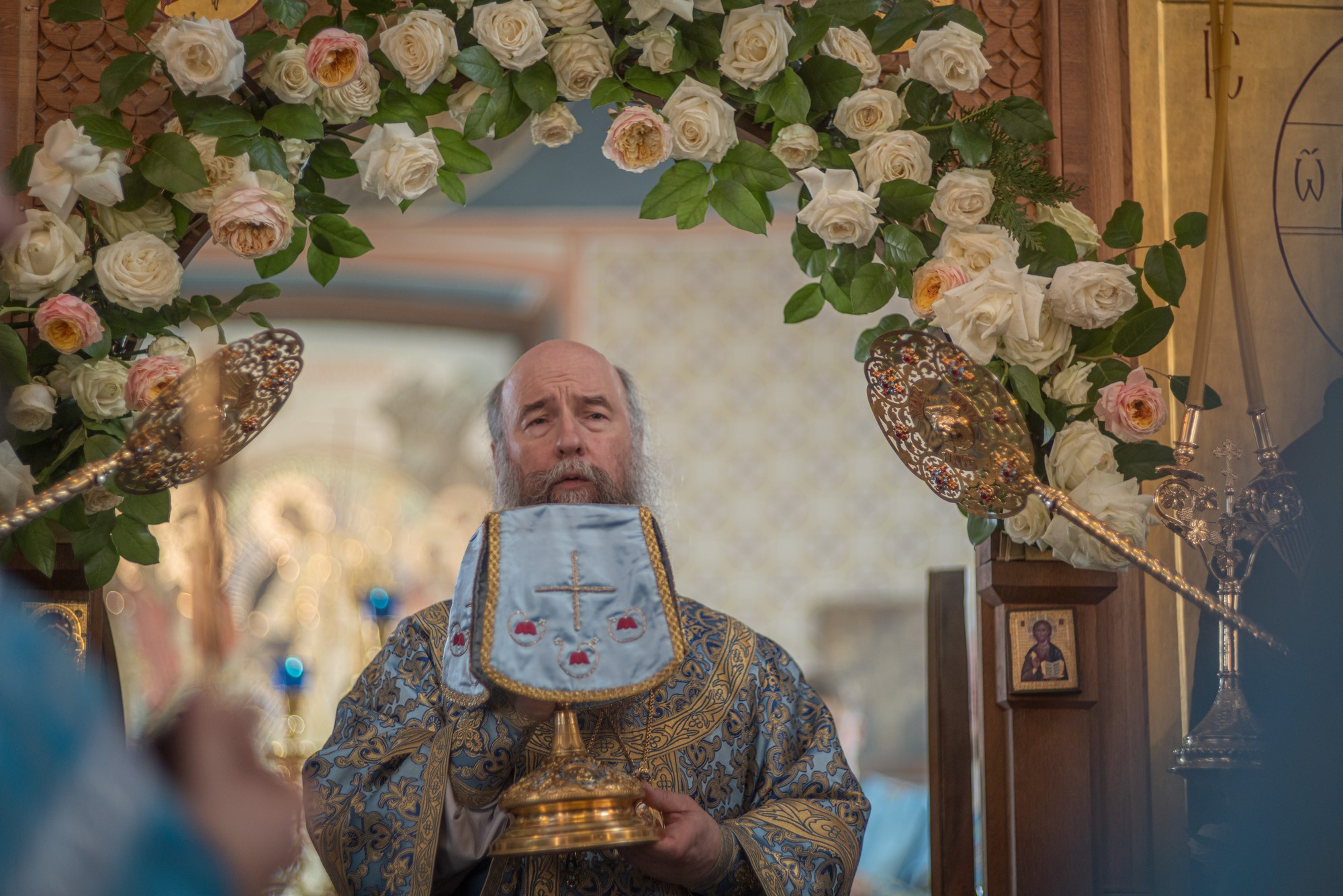 Правом служения Божественной литургии с отверстыми Царскими вратами до «Иже Херувимы»: