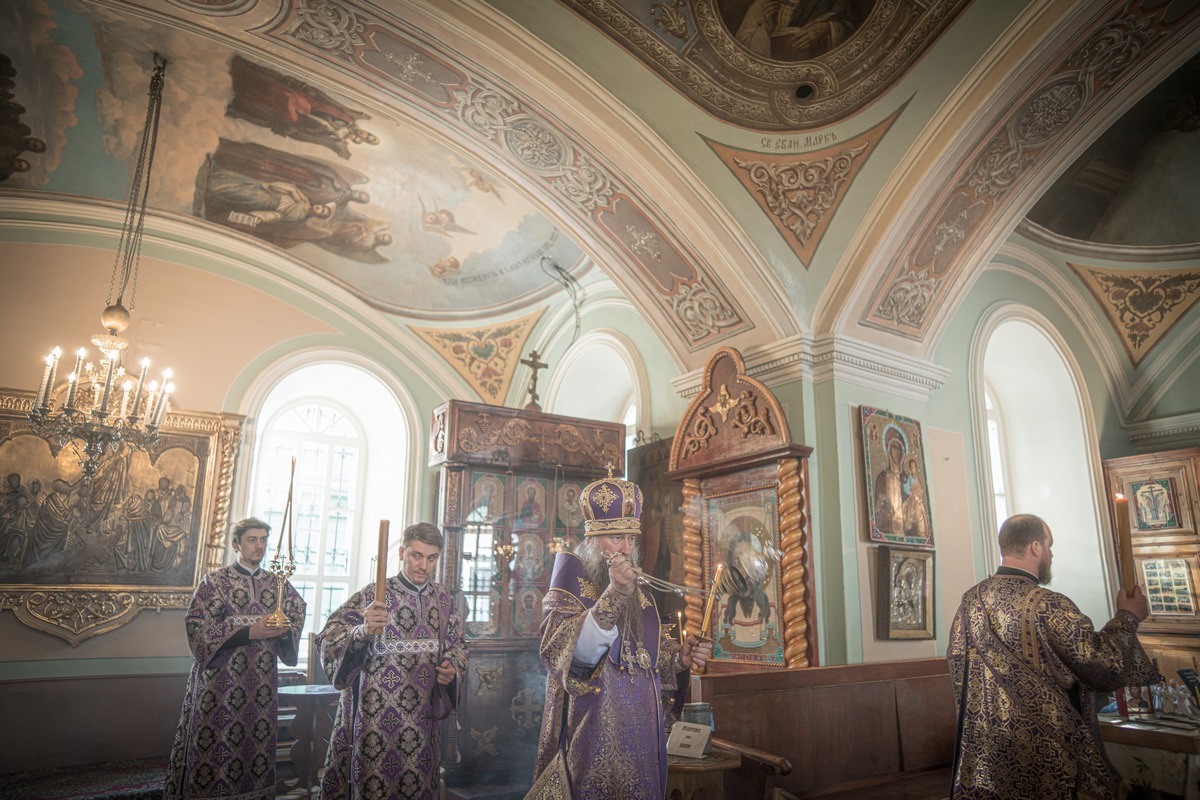 Его Преосвященству сослужили: секретарь Сергиево-Посадского епархиального управления, благочинный Ивантеевского церковного округа протоиерей Иоанн Монаршек; благочинный Всехсвятского церковного округа протоиерей Василий Кислянка; настоятель Казанского храма с. Шеметово протоиерей Александр Стрижак; духовенство Сергиево-Посадской епархии.