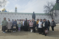 После чаепития паломники отправились в Свято-Троицкую Сергиеву Лавру, где посетили святые места, приняли участие в молебном пении и приложились к святым мощам преподобного Сергия Радонежского. Лаврские экскурсоводы провели экскурсию «Воинская слава Троице-Сергиевой Лавры», которая раскрывает значение Троицкого монастыря и роль его насельников-фронтовиков в защите Отечества. Участники поездки помолились у могил лаврских фронтовиков архимандрита Кирилла (Павлова) и архимандрита Наума (Байбородина) и возложили цветы.