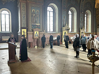 Была совершена лития о погибших воинах и молебен о защитниках Отечества.