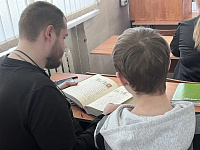 Священник рассказал о начале книгопечатания в России и Европе, значении книг Священного Писания для понимания культурных истоков современной цивилизации. В ходе встречи учащиеся ознакомились с различными изданиями Библии и отдельных священных книг, поддержали беседу о значении книги для просвещения.