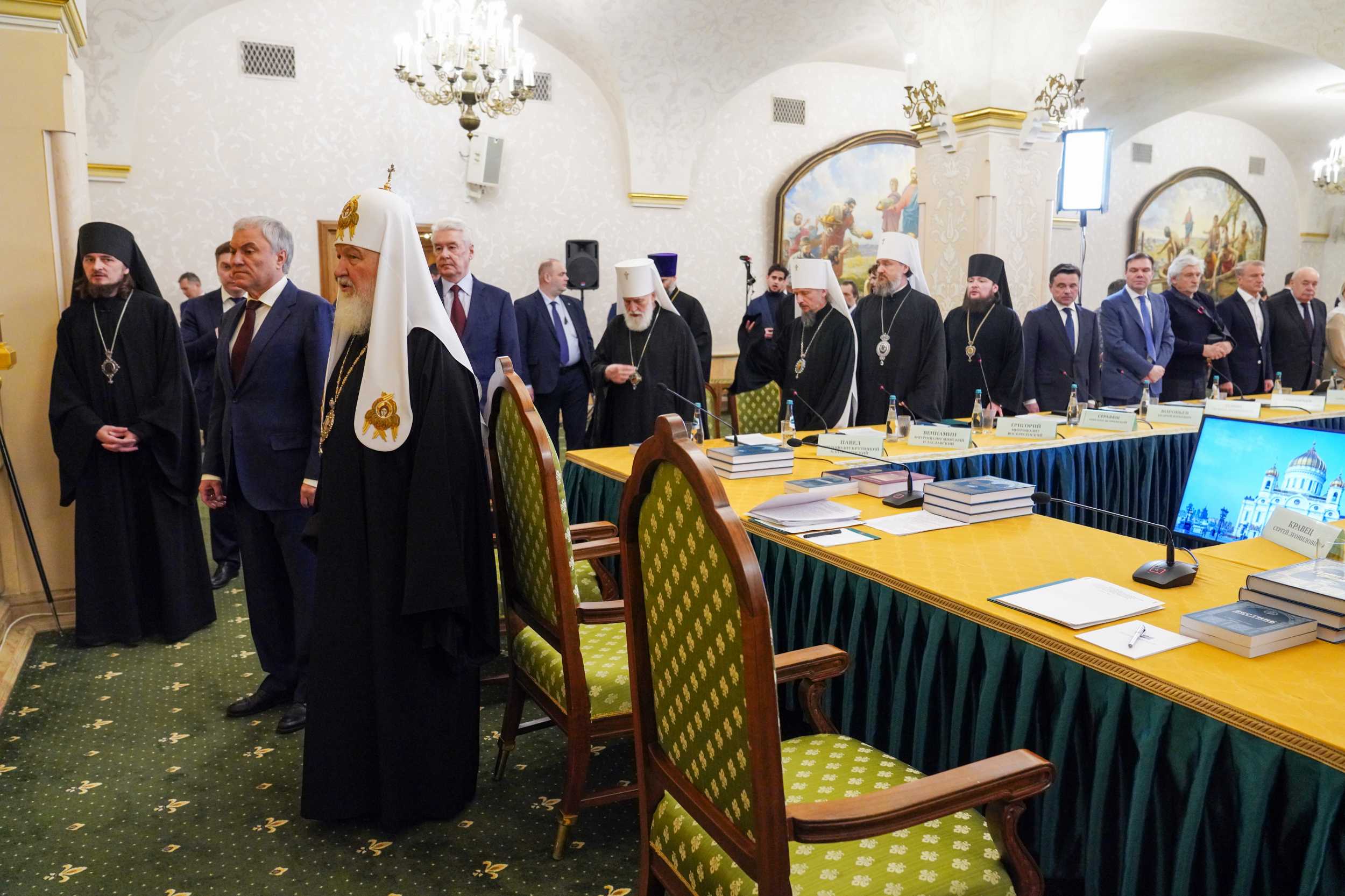 Также в заседании участвовали: заместитель председателя Государственной Думы ФС РФ П.О. Толстой; помощник Президента РФ А.А. Фурсенко; председатель Либерально-демократической партии России, руководитель фракции ЛДПР в Государственной Думе ФС РФ, председатель Комитета Государственной Думы ФС РФ по международным делам Л.Э. Слуцкий; председатель Комитета Государственной Думы ФС РФ по вопросам собственности, земельным и имущественным отношениям С.А. Гаврилов; губернатор Московской области А.Ю. Воробьев; специальный представитель Президента РФ по международному культурному сотрудничеству М.Е. Швыдкой; первый заместитель руководителя Аппарата Правительства РФ Л.Л. Левин; директор Департамента государственной поддержки периодической печати и книжной индустрии Министерства цифрового развития, связи и массовых коммуникаций РФ В.В. Григорьев; председатель Московской городской Думы А.В. Шапошников; заместитель мэра Москвы в Правительстве Москвы по вопросам региональной безопасности и информационной политики А.Н. Горбенко; руководитель Департамента национальной политики и межрегиональных связей г. Москвы В.И. Сучков; ректор Российского православного университета святого Иоанна Богослова, заместитель главы Всемирного русского народного собора А.В. Щипков; руководитель Церковно-научного центра «Православная энциклопедия» С.Л. Кравец; другие члены Советов по изданию «Православной энциклопедии».