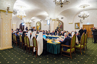 В заседании приняли участие: Патриарший наместник Московской митрополии митрополит Крутицкий и Коломенский Павел; Патриарший экзарх всея Беларуси митрополит Минский и Заславский Вениамин; управляющий делами Московской Патриархии митрополит Воскресенский Григорий; первый заместитель председателя Издательского Совета Русской Православной Церкви епископ Истринский Серафим.