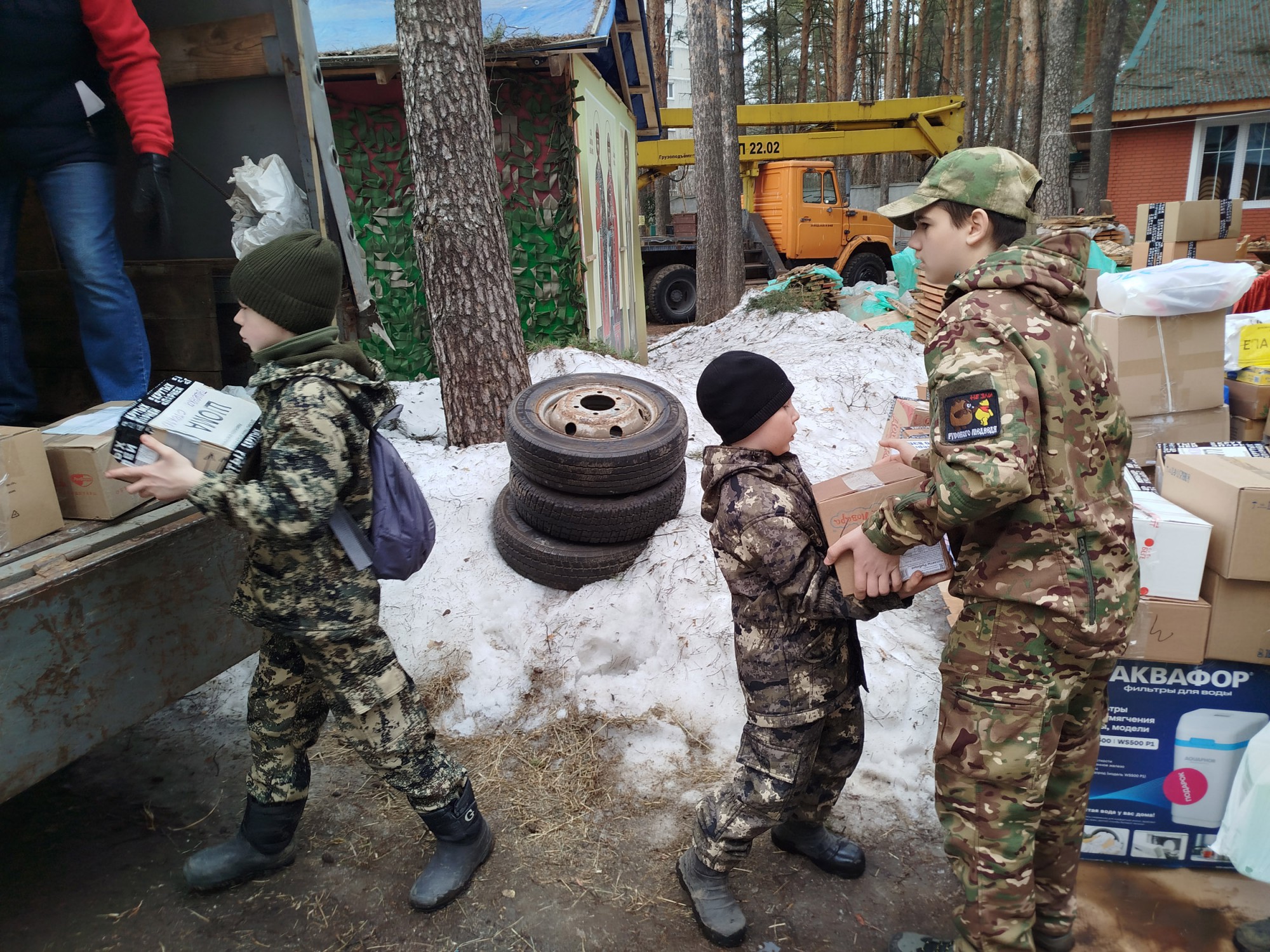 Во время погрузки большую помощь оказали курсанты ВПК «Высота» при Казанском храме вместе с руководителем Юдиным Н.К. и родителями.