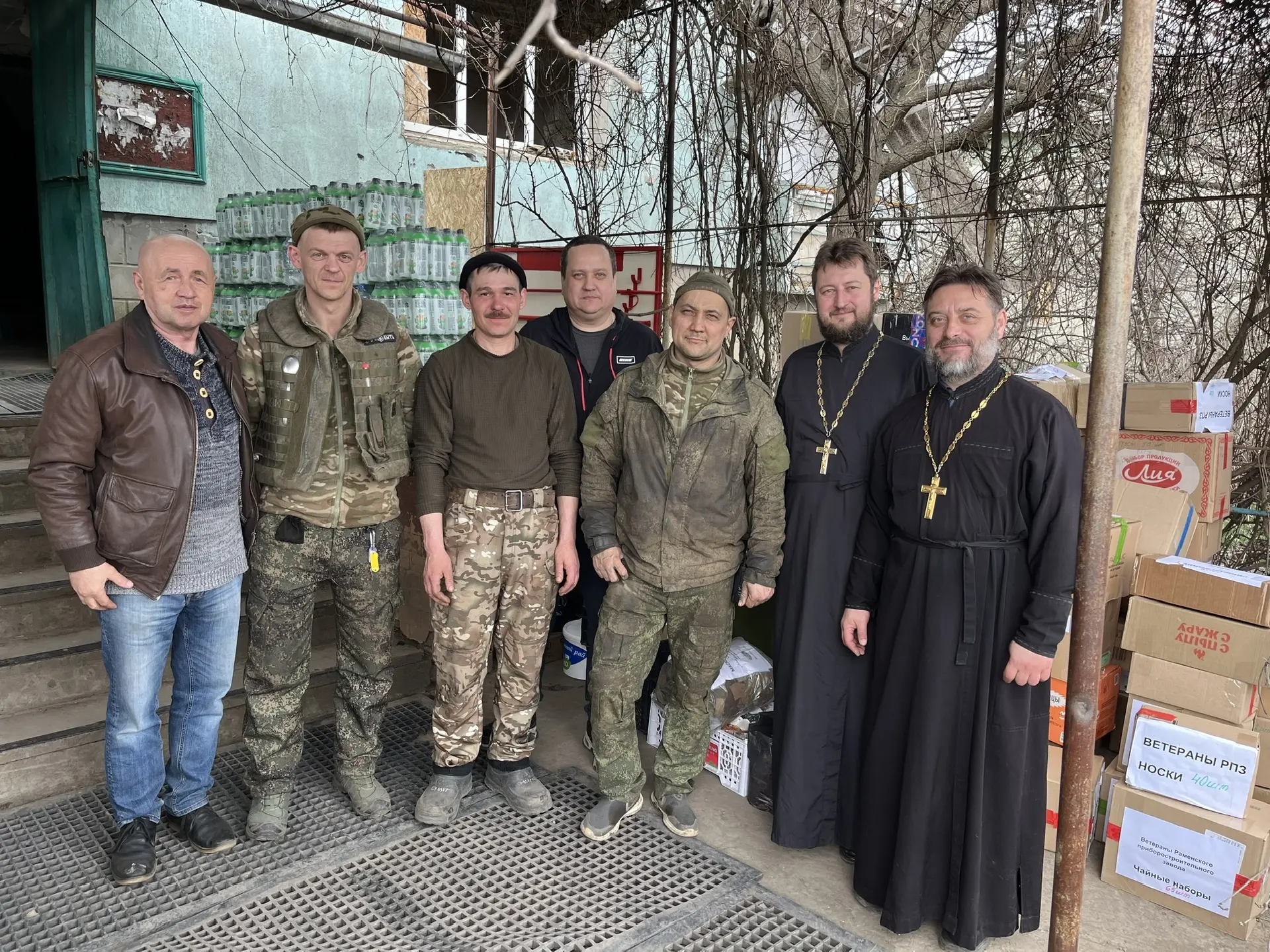 В поездке участвовали священнослужители: настоятель Христорождественского храма пос. Родники Олег Занин, настоятель Знаменской церкви деревни Алёшино Егорьевского округа священник Роман Теребилкин. Вместе с ними участвовали фронтовые волонтёры: председатель совета директоров ГК «Кредит-Центр» Мазурин Н.М., заместитель генерального директора ГК "Кредит-Центр" Козлов М.В., Черных О.Ю., Чемерис В.А. и другие.
