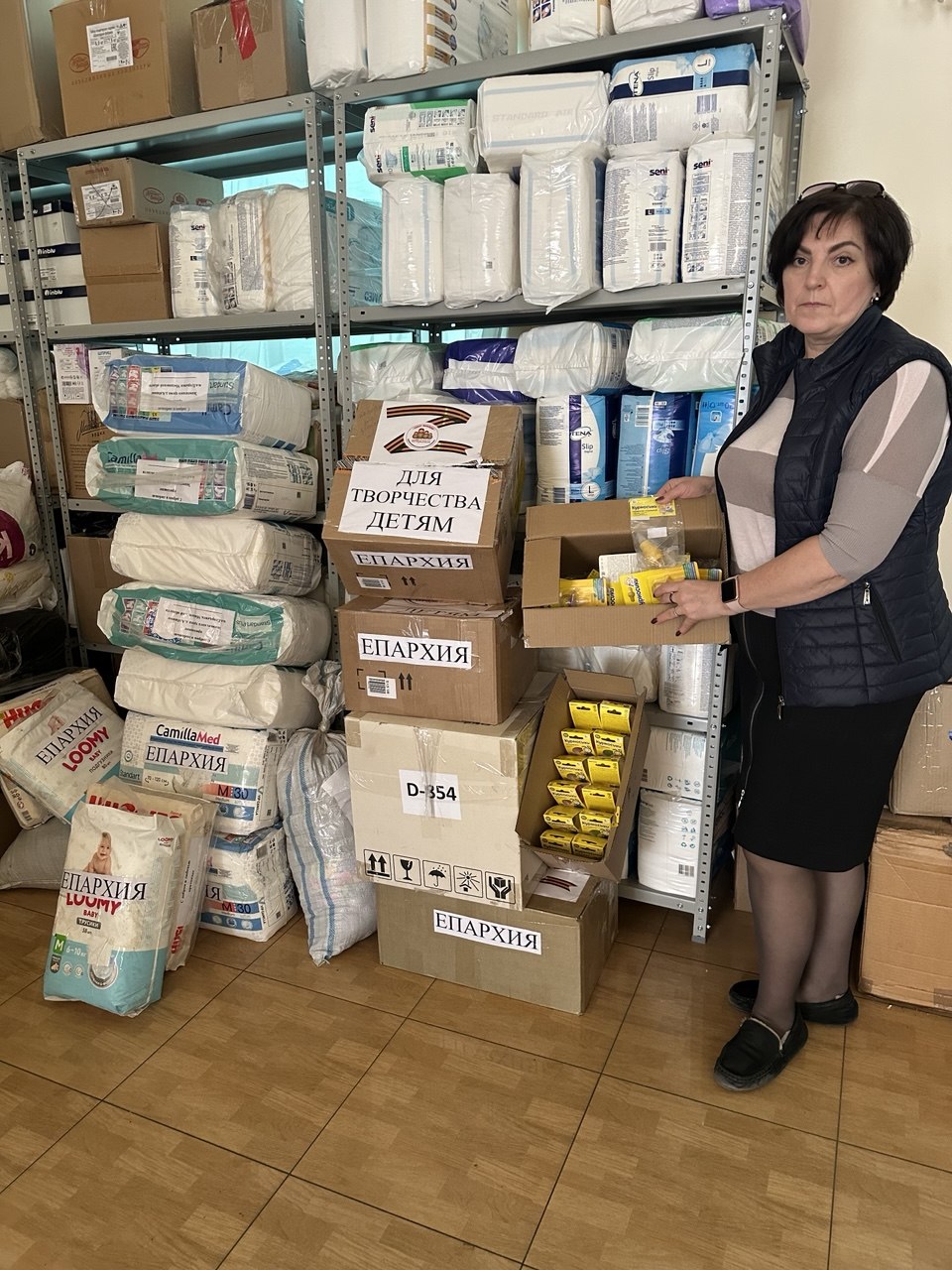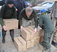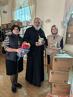 Конвой посетил социальный отдел Донецкой епархии. Туда передали посевной материал (лук-севок, зелень, овощи и др.), средства гигиены, продукты питания.