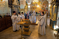 Его Высокопреосвященству сослужили: секретарь Коломенского епархиального управления иерей Андрей Згонников и клирики собора.