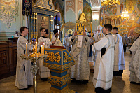Богослужебные песнопения исполнил соборный хор под управлением Натальи Камышниковой.