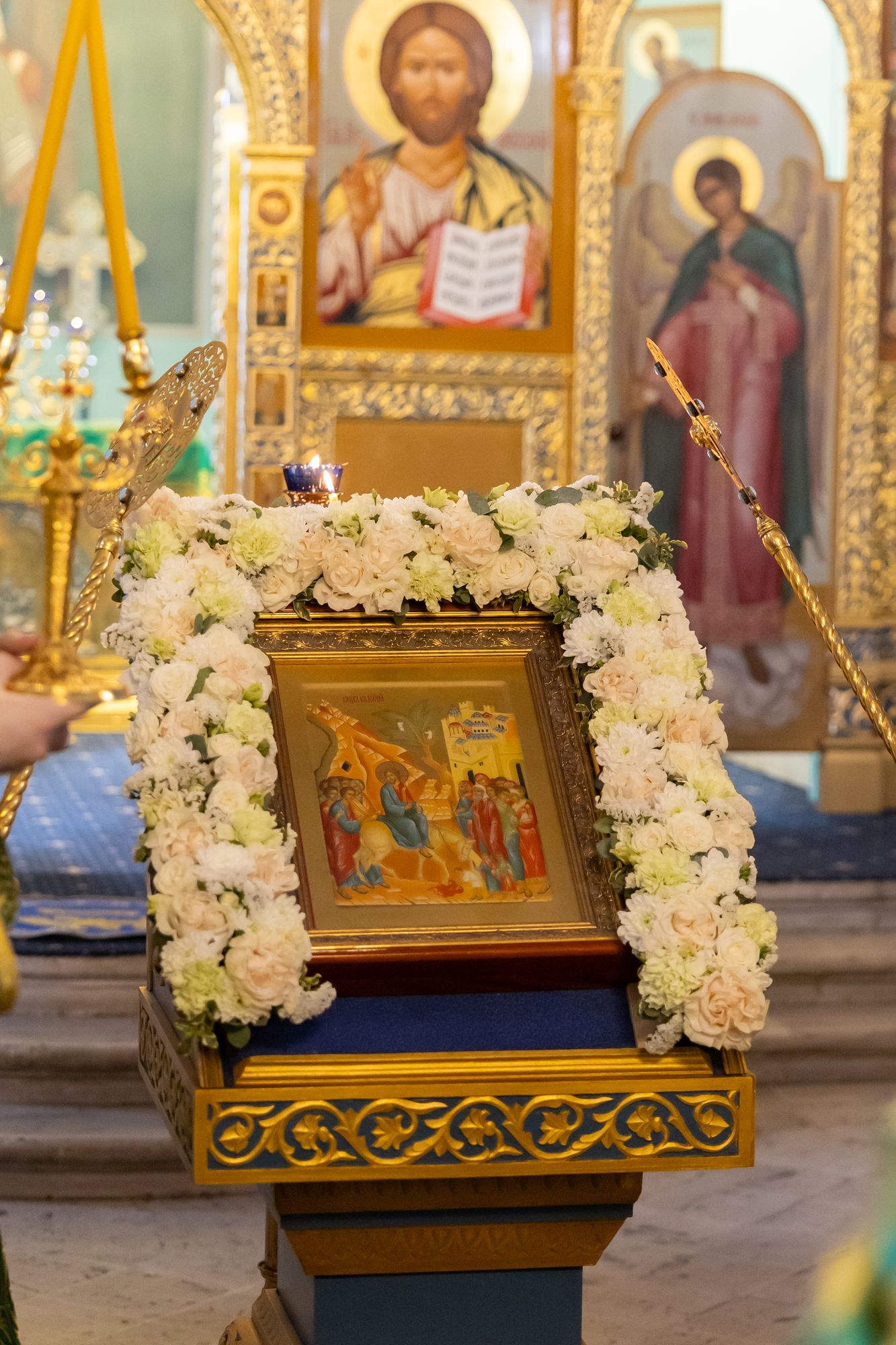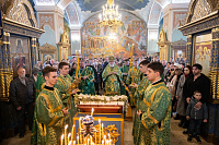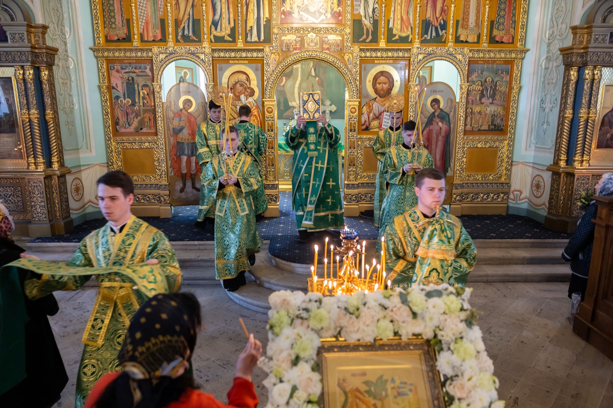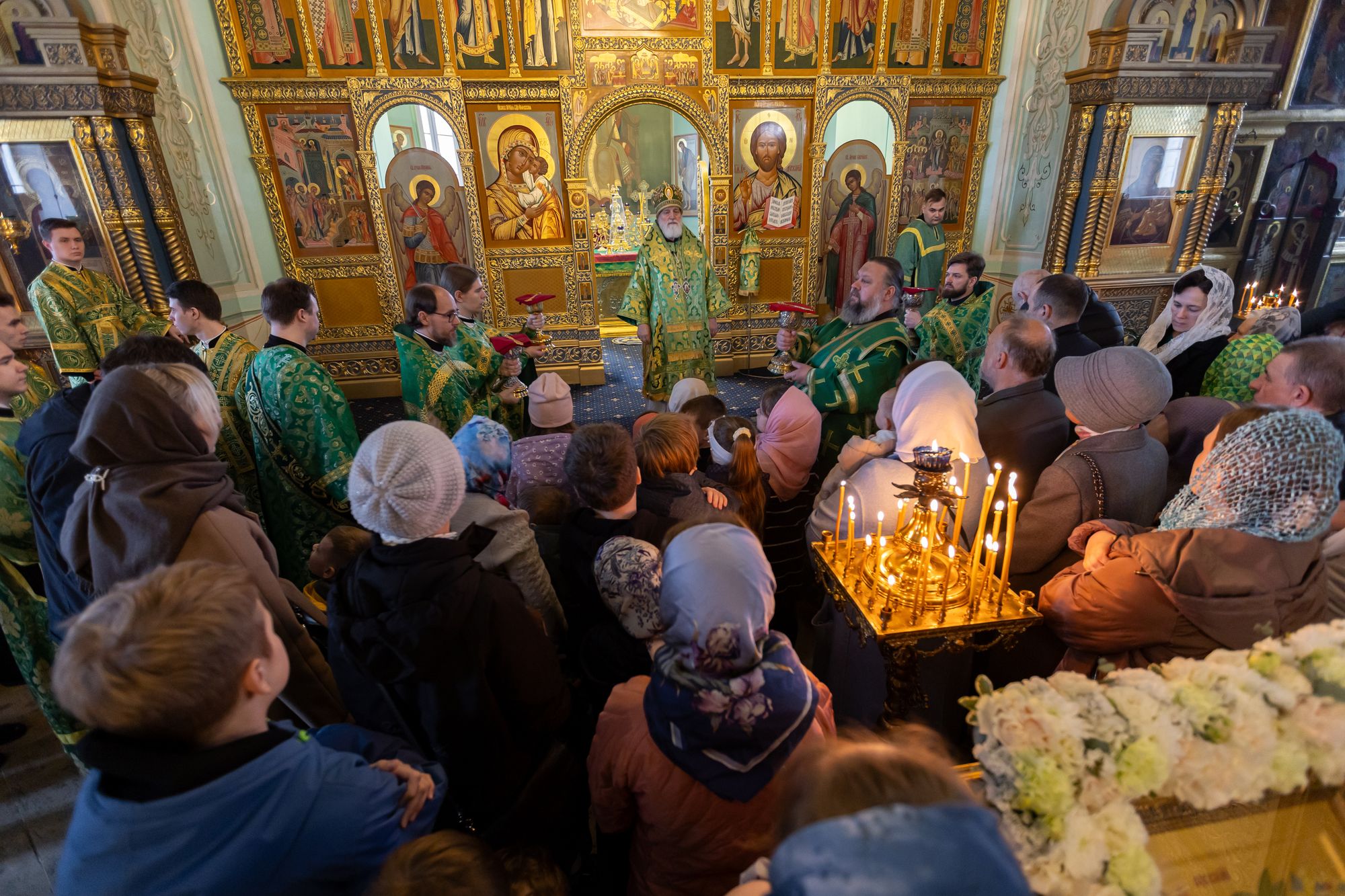 Богослужебные песнопения исполнил соборный хор под управлением Натальи Камышниковой.