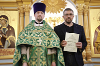 Благочинный 1-го Воскресенского благочиннического округа и преподаватель курсов протоиерей Кирилл Седов лично поздравил каждого выпускника с успешным завершением двухлетней программы обучения и с добрыми пожеланиями вручил свидетельства.