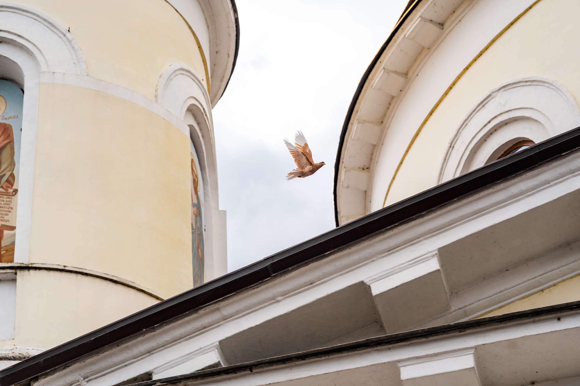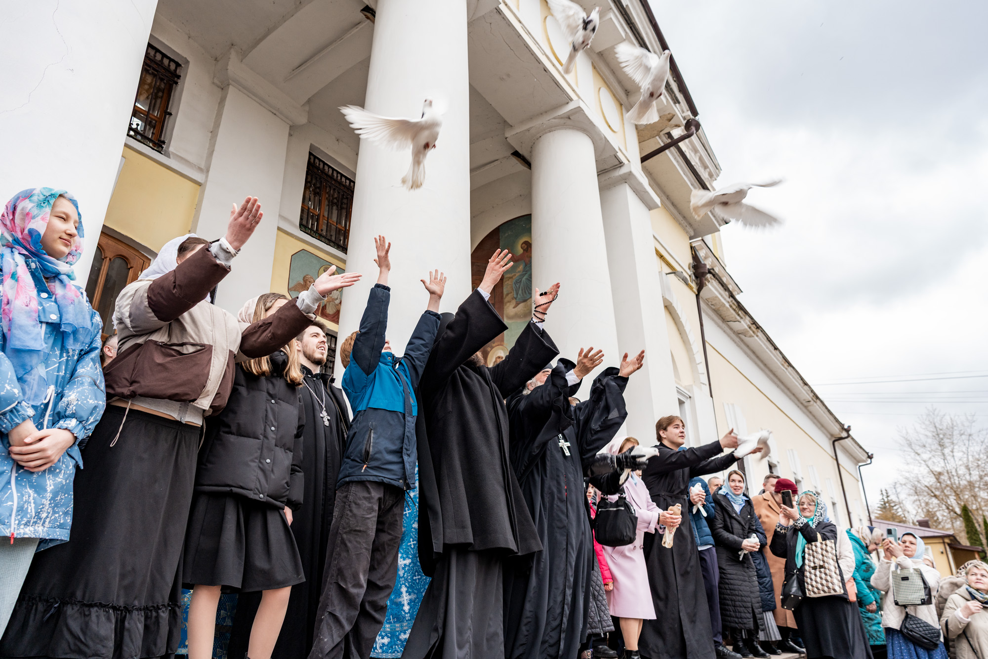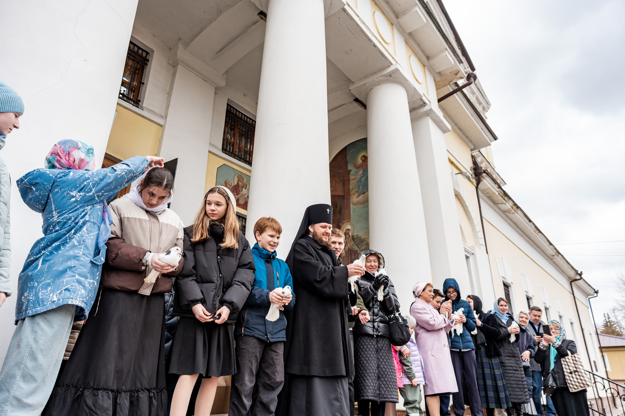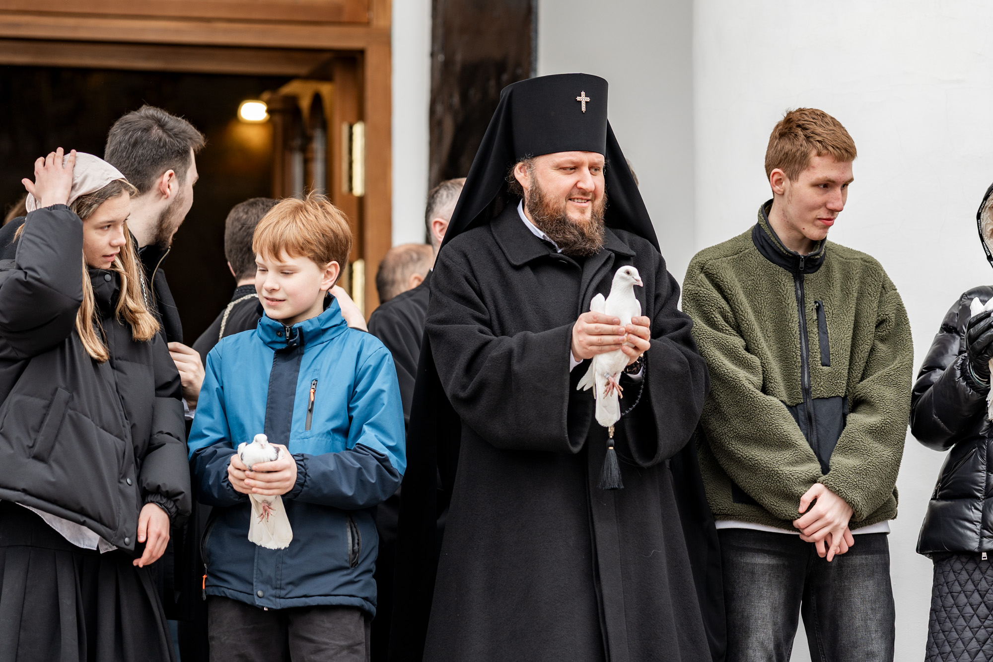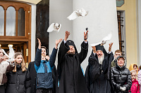 После литургии вместе с прихожанами архиепископ Аксий выпустил в небо голубей.