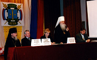 Затем к присутствующим обратился митрополит Ювеналий, выступивший с докладом на тему "Любовь к родному краю".