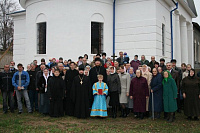 26 октября в праздник Иверской иконы Божией Матери в Успенском храме села Войнова Гора после Божественной литургии, которую совершил благочинный Орехово-Зуевского церковного округа протоиерей Андрей Коробков в сослужении настоятеля храм священника Алексия Демьянова, был освящен крест, увенчавший купол алтарной части храма. Единодушная молитва перед чтимой Иверской иконой Божией Матери, сохранившейся от прежнего храма, сплотила прихожан и благотворителей, потрудившихся в общем деле восстановления порушенной святыни. Прошло почти 15 лет с момента возобновления духовной жизни в храме, но только сейчас стали видны плоды этих трудов: уют и молитвенная обстановка на приходе, прекрасный женский профессиональный хор. Несмотря на рабочий день было много молящихся. В своем слове отец благочинный поздравил настоятеля и прихожан и вручил благотворителям благодарственные письма.