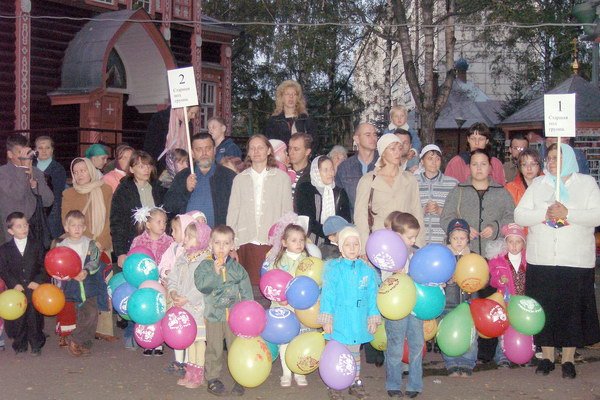Тем временем прошло несколько дней. На улице даже жарко для 29 сентября. Многие собрали свои вещи и разъехались кто куда. Но только не мы. Только не воскресная школа «Надежда». В этот день у нас Пересветовы старты. Общее построение у храма, и колонна во главе со знаменосцем двинулась к стадиону