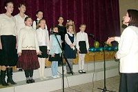 В завершение выступила группа хора нашей воскресной школы под руководством Натальи Ивановны Потаниной, исполнившая песни В. Беляева на стихи Л. Мерновой «Творите добрые дела» и «В душе своей воздвигни храм»