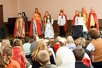 «Никитята» показали собравшимся спектакль «Великий Воин», в котором в наглядной музыкально-театральной форме было рассказано о житии и подвиге великомученика Никиты Готского. Затем были отдельные номера детского творчества. Одного за другим вызывал на сцену игумен Амвросий (Шевчук), настоятель Никитского храма деревни Бывалино, участников детского праздника, и они не подкачали, создавая в зале атмосферу торжества и праздника. Солнышко, сквозь большие окна заливавшее малый зал своим светом, придавало происходящему еще более радостный настрой. Искрометные, костюмированные танцевальные номера электростальского коллектива «Детский мир», специально приглашенного на этот праздник, вызывали у всех сидящих в зале детишек, желание научиться также танцевать. Нашлось на сцене и время для выступления