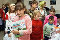 Когда незаметно подошло время окончания выступлений, то все даже удивились как быстро пролетело время. Благочинный отец Александр, подводя итог происшедшему и поздравляя собравшихся детишек с праздником, еще раз обратил внимание присутствующих взрослых на слова Спасителя, произнесенные около двух тысяч лет назад: «Не препятствуйте детям приходить ко Мне». Священник Марк Ермолаев настоятель Вознесенской церкви на Городке поздравил в этот день собравшихся ребят не только на словах, но и солидными сладкими подарками. Эти подарки были собраны и преданы детям Павловопосадским депутатом С.Б. Ильиным, который уже не первый раз оказывает поддержку церковно-общественным проектам по работе с детьми. Международный детский фонд писателя А.А. Лиханова подарил каждому малышу по книге из серии «иллюстрированных приключений», а от Павловопосадского благочиния каждый ребенок унес по детскому православному журналу «Свечечка».