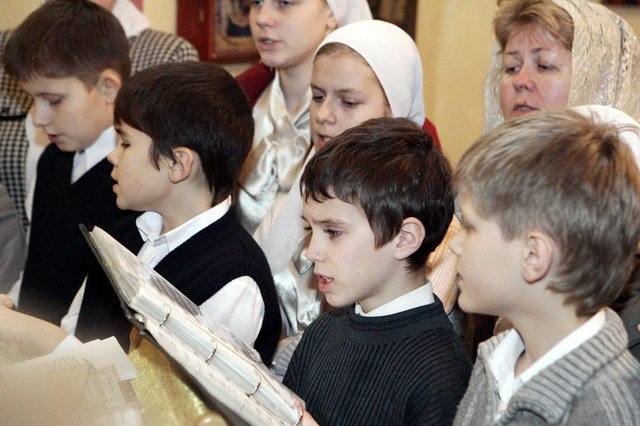 За торжественной юбилейной службой пел хор детской музыкальной школы, действующей при Успенском храме города Красногорска. Этот же хор пел и ровно 10 лет назад в Скорбященской церкви, только состав его с тех пор полностью обновился, ведь те дети уже стали взрослыми. Один из мальчиков, певших здесь