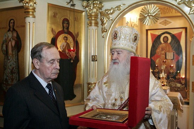 Здесь в то время, когда Роман Семенович был в составе местного руководства, созидался этот храм. Его подвигла к этому кончина его любимой жены Галины Александровны. Я помню, дорогой Роман Семенович, встречу с Вами, когда Вы искали утешения в своей печали. Вы всем сердцем восприняли мой совет, состоящий в том, что самым лучшим увековечением памяти супруги будет постройка храма около места ее упокоения, где будут всегда возноситься молитвы о ее бессмертной душе. Ваш благочестивый порыв Господь благословил, и Вы воздвигли этот храм в честь иконы Божией Матери Всех скорбящих Радость. Я уверен, что молитвы в этом храме всем приносят радость и утешение. Матерь Божия исполняет благие прошения и намерения всех, кто посещает этот храм и молится здесь.