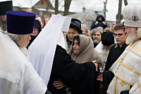 По церковному обычаю, гроб с телом священника был обнесен вокруг храма, которому он посвятил многие годы своей жизни. Потом была совершена последняя лития, и совсем рядом с домом Божиим, справа от церковной паперти, отец Виктор обрел место своего окончательного земного пристанища. Могилка батюшки обильно покрылась символами вечной жизни цветами, возложенными Владыкой митрополитом, священнослужителями и благочестивыми мирянами. Несмотря на мороз, души богомольцев были согреты надеждой на молитвенное предстательство своего духовного отца перед Господом.