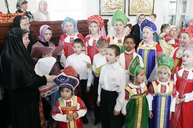 Когда гости входили в храм, детский хор воспитанников приюта от мала до велика дружно пропел «Светися, светися, Новый Иерусалиме ». Руководила хором матушка Василия монахиня, которая уже долгие годы усердно и самоотверженно служит детям.