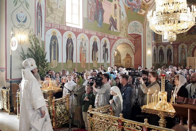 «Братья-архипастыри, дорогой Валерий Васильевич, дорогие гости, возлюбленный отец Никон, настоятели святых обителей нашей епархии, всечестные отцы, дорогие и возлюбленные братья и сестры!