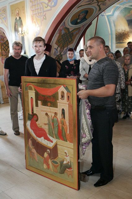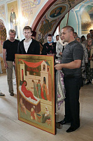 В ответном слове В.А. Петрущенко выразил глубокую благодарность Владыке за оценку его трудов и преподнес в дар приходу большую храмовую икону для нового иконостаса.