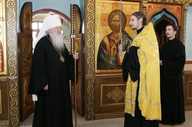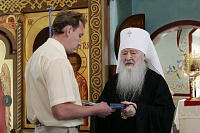 Настоятель храма священник Георгий Пужалов встретил митрополита Ювеналия на пороге храма. Высокопреосвященнейший Владыка осмотрел Богородицерождественскую церковь. Свои впечатления он выразил словами: «Я очень рад, что прежде поруганный храм теперь так благоукрашен. В нашем народе находятся жертвователи и благотворители, которые все свои силы полагают на возрождение православных храмов. В этом приходе таким благотворителем является Виктор Анатольевич Петрущенко. Позвольте, Виктор Анатольевич, сердечно поблагодарить Вас и вручить награду от имени Святейшего Патриарха, который во внимание к Вашим жертвенным трудам удостоил Вас ордена святого благоверного князя Даниила Московского III степени».