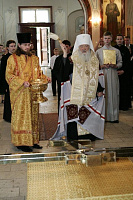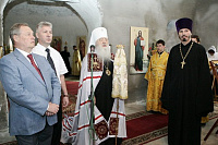Митрополит Ювеналий посетил Благовещенскую церковь, где совершил молитву у чтимых икон Благовещения Пресвятой Богородицы и Николы Зарайского. В своем слове Владыка поделился воспоминаниями о том времени, когда он начинал свое служение в сане епископа, регулярно приезжая в этот храм.