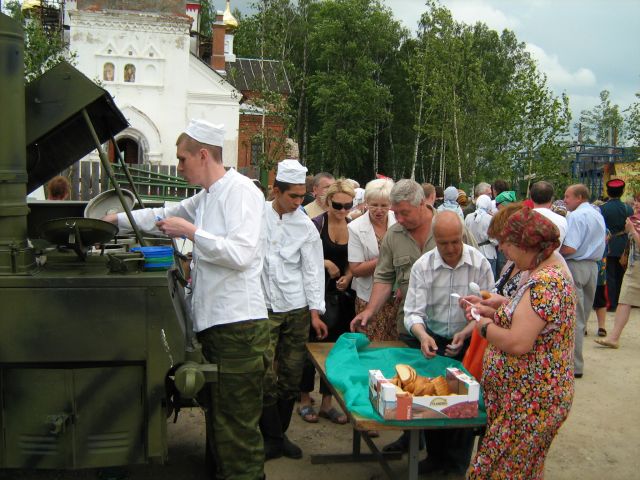 Во время фестиваля все желающие могли подойти к подставке с колоколами и попробовать свои силы в звонарном искусстве. На территории работала полевая кухня, приглашенная из воинской части.