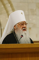 В заключение моего доклада выражаю слова благодарности Его Святейшеству Святейшему Патриарху Московскому и всея Руси Алексию II, членам Священного Синода и всем Вам, возлюбленные архипастыри, за высокое доверие, которое оказывается Синодальной Комиссии по канонизации святых в ее работе.