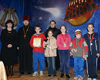 Тожественное закрытие состоялось уже вечером. В 17.00 уставшие, но веселые команды собрались в актовом зале. На почетном месте уже красовались кубки, медали за призовые места, ценные подарки от Комитета по делам молодежи Московской области и Епархиального отдела по делам молодежи. Для вручения наград победителям на сцену поднялись протоиерей Олег Сердцев, священник Александр Сербский, А. А. Печерий и Т. Ю. Ропот.