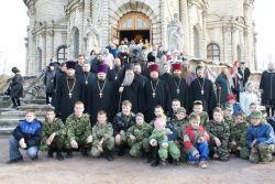По благословению митрополита Ювеналия Литургию 26 октября возглавил епископ Серпуховской Роман. Владыке сослужили 10 священников и четыре диакона. В их числе председатель и члены Епархиального отдела по делам молодежи, благочинный Подольского округа. Старинный, всемирно известный Знаменский храм в Дубровицах был заполнен молящимися детьми и молодежью в парадной униформе — почти все в этот день стали причастниками.