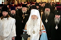 Вспоминаю, как 20 лет назад мы праздновали тысячелетие Крещения Руси. С тех пор в жизни нашей страны произошли значительные изменения – сколько людей обрели веру, нашли дорогу к храму! Во главе этого благодатного, спасительного процесса возрождения неизменно стоял Святейший Патриарх Алексий. Его Святейшество, за эти двадцать лет своим личным примером показал архипастырям и пастырям пример того, как нужно вести народ Божий ко Господу, как строить свои отношения с властями и общественными организациями. Сегодня мы видим, что плоды этого служения велики. Мы благодарим Бога за это двадцатилетие.