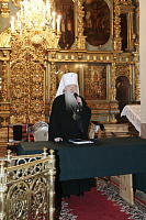 Вначале митрополит Ювеналий выразил участникам собрания соболезнование в связи с постигшей безвременной кончиной Святейшего Патриарха Московского и всея Руси Алексия II и совершил литию по новопреставленному Предстоятелю Русской Православной Церкви и преставившимся в 2008 г. клирикам Московской епархии.