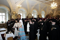 23 декабря в Успенском храме Новодевичьего монастыря города Москвы под председательством Управляющего Московской епархией митрополита Крутицкого и Коломенского Ювеналия состоялось годичное Епархиальное собрание, на котором присутствовали викарии Московской епархии: архиепископ Можайский Григорий, епископ Видновский Тихон, благочинный монастырей Московской епархии епископ Серпуховский Роман, члены Епархиального совета, благочинные, ректор Коломенской Духовной семинарии протоиерей Николай Качанкин, председатели и секретари Епархиальных отделов, секретари епархиальных комиссий, настоятели и настоятельницы монастырей, настоятели приходов, духовники Московской епархии.