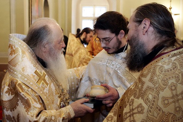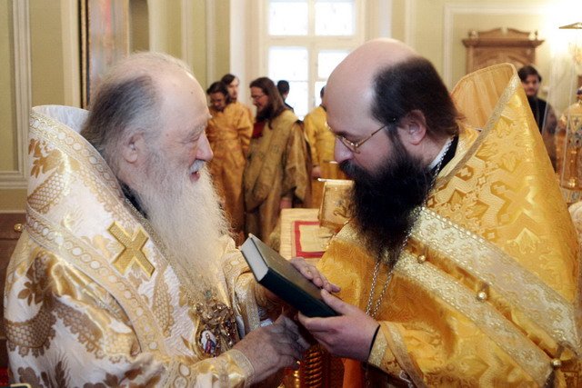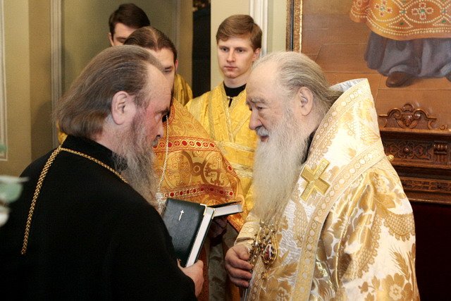Этот день, особый для Вас, день Вашей личной Пятидесятницы, когда 43 года назад через возложение рук архипастырей Вы приняли благодать апостольского преемства. С тех пор Вы всего себя посвятили служению Святой Церкви, народу нашему и Отечеству. 43 года — это звучит. Конечно, некоторым из нас, кто не так давно служит в Церкви, это трудно осмыслить. Необходимо представить, что эти 43 года Вы были не просто священнослужителем, но архипастырем, преемником святых апостолов, не имея никаких личных устремлений и интересов, кроме интересов Святой Церкви. И сегодня мы склоняемся перед Вами с почтением и любовью: с почтением за Ваше любимое служение, а с любовью — как Ваши духовные дети и Ваши послушники.