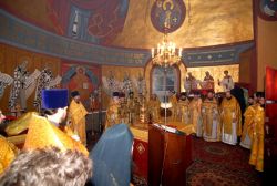 После соборно отслуженной Божественной литургии духовенство разместилось в одном из классов нового здания Детской церковной музыкальной школы. Перед началом собрания благочинный протоиерей Константин Островский поздравил с назначением недавно рукоположенных клириков: священника Георгиевской церкви поселка Нахабино Максима Вараева и диакона