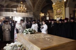 23 февраля исполнилось 80 лет со дня рождения приснопамятного Святейшего Патриарха Алексия. В этот день митрополит Крутицкий и Коломенский Ювеналий совершил панихиду в Богоявленском кафедральном соборе в Елохове, где покоится пятнадцатый Предстоятель Русской Православной Церкви.