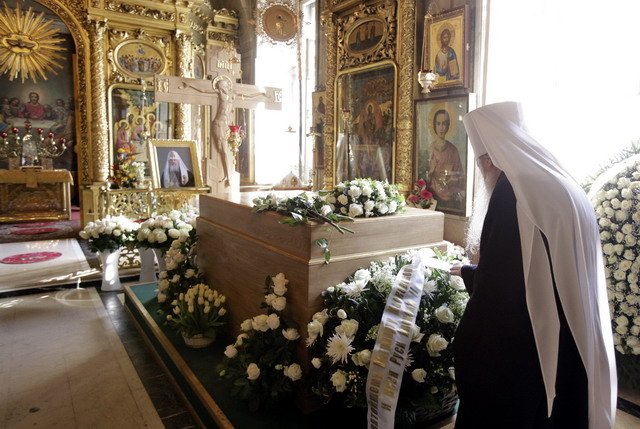 Мы верим, что Святейший Патриарх, который полагал свою жизнь за Церковь и Отечество, является теперь нашим молитвенником перед Престолом Божиим. Помолимся и об упокоении души приснопамятного Святейшего Патриарха Алексия, и о том, чтобы Господь всем нам послал все необходимое для нашей временной жизни и сподобил Царствия Небесного в вечной жизни! Аминь».